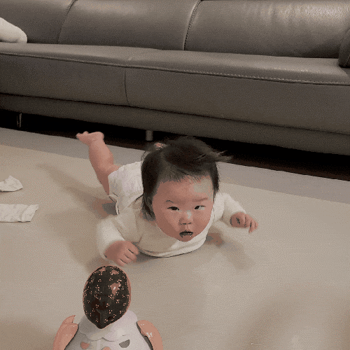 그리고 배밀이도 시작했어 이제부터는 못 가고 손으로 밀고 뒤로 갈게