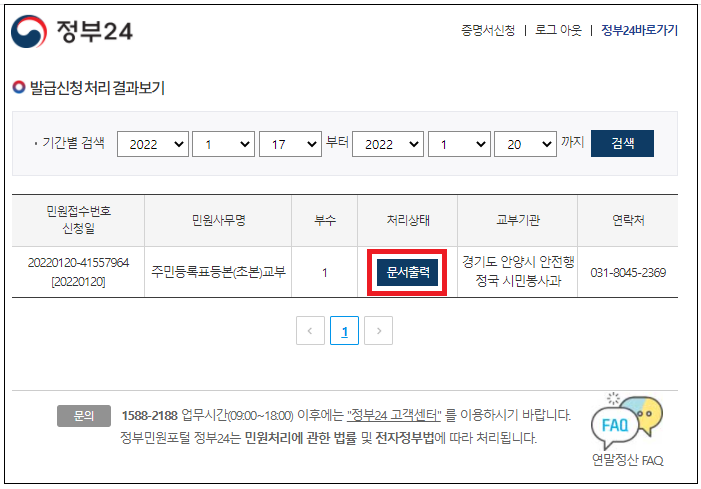 민원24콜센터 1588-2188(가능시간 9:00~18:00) 혹 문의사항이 있으시면 전화주세요.