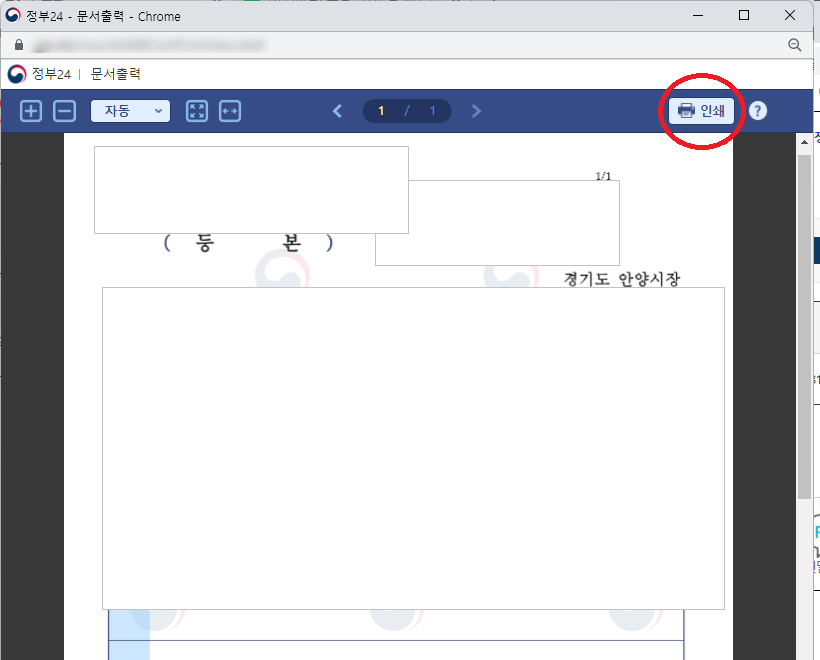 출력 버튼밖에 없어서 당황했다구요?주민등록등본 인터넷 발급 pdf 저장 시에도 문서출력을 눌러주세요.