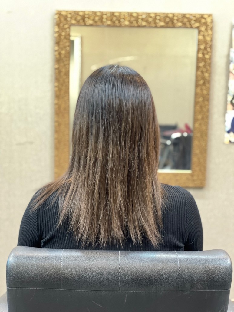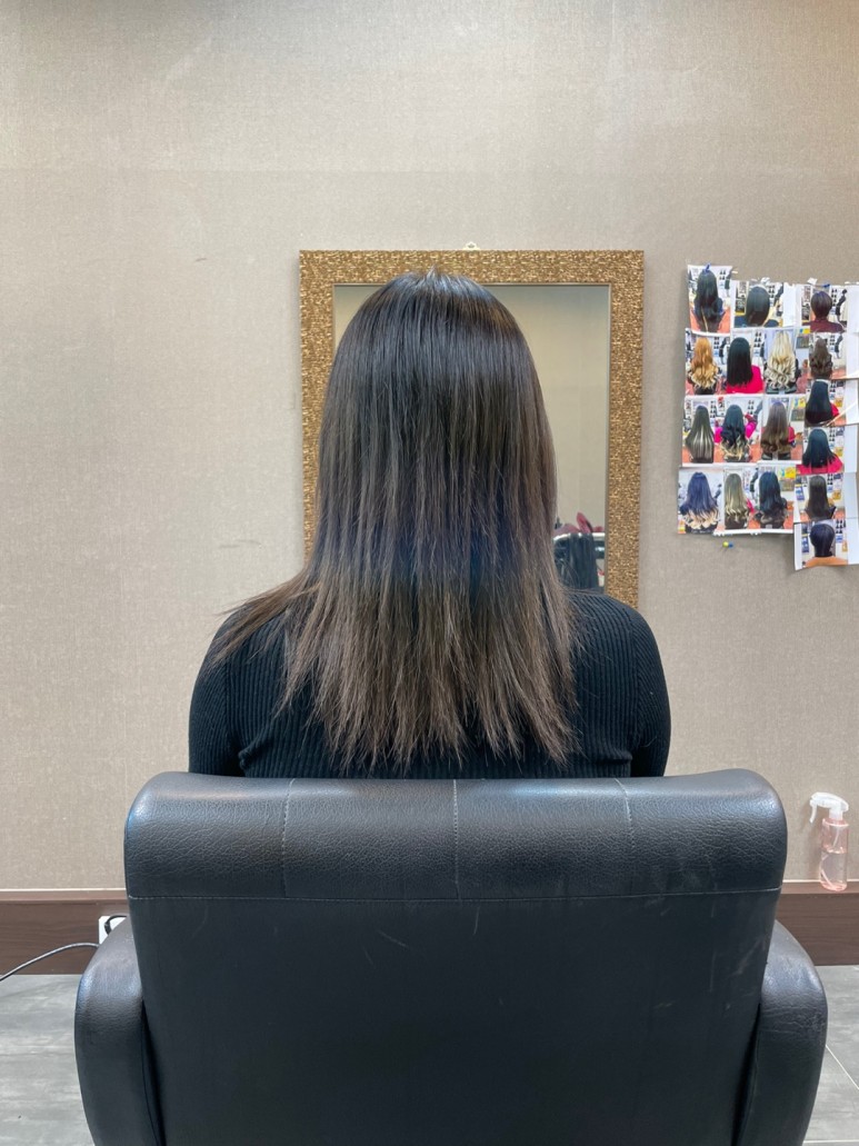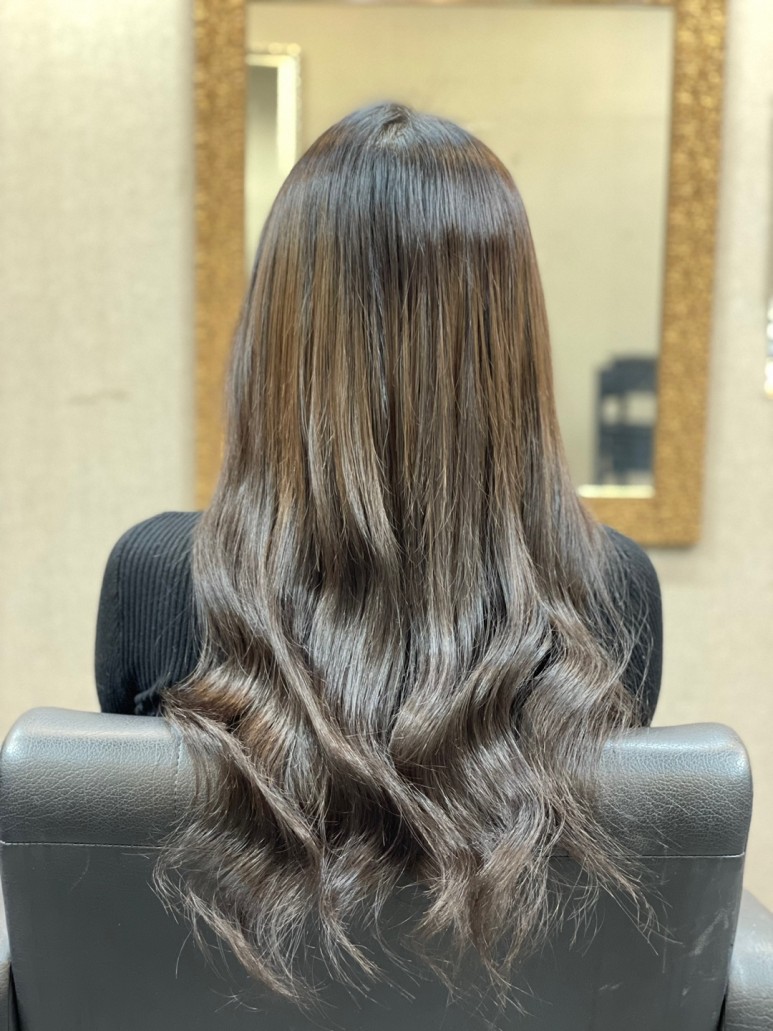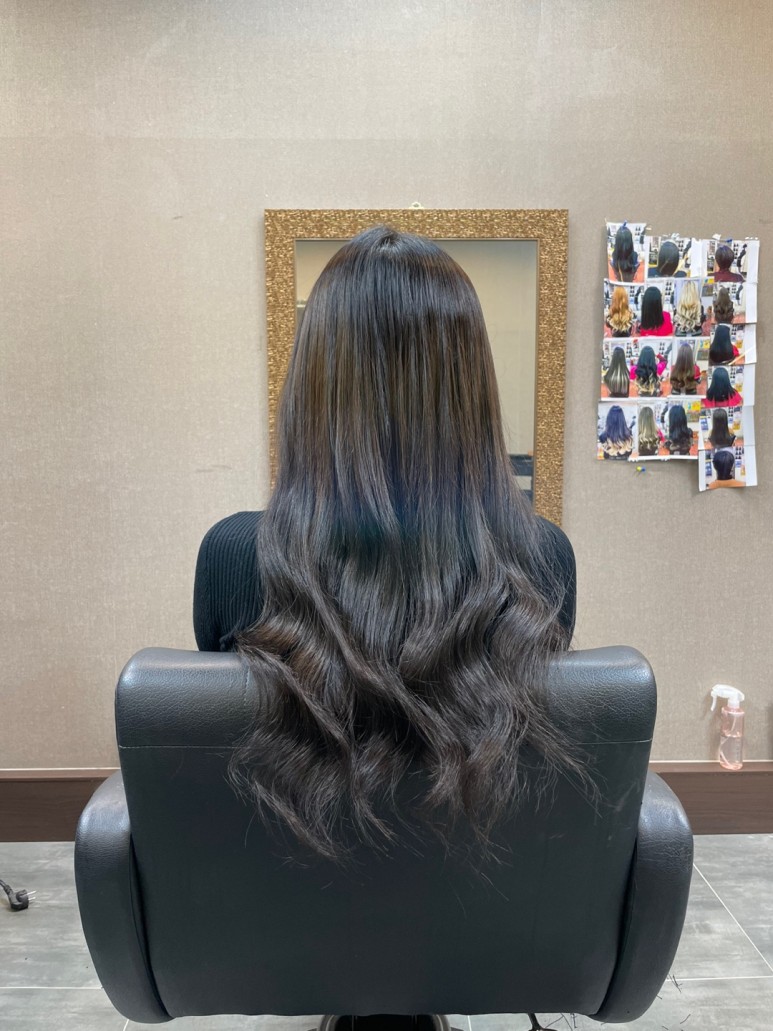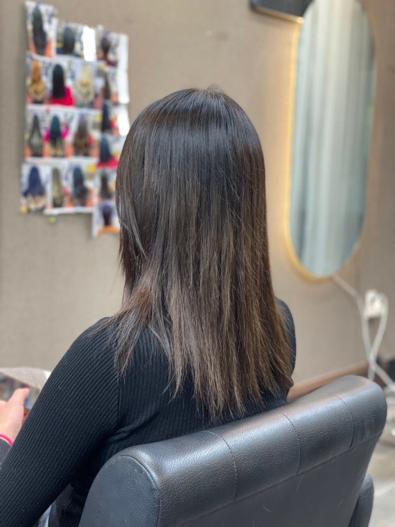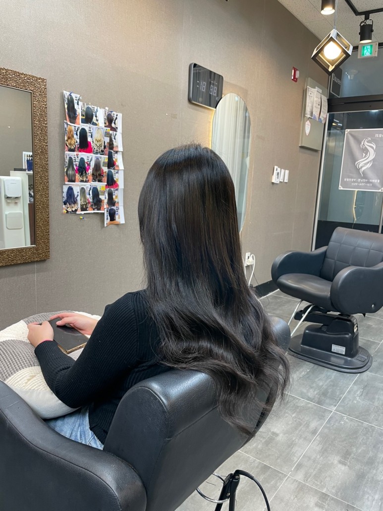 펌이나 염색이 가능하기 때문에 바로 펌을 하고 싶었지만 상한 모발 끝 부분을 완전히 자르지 않은 상태여서 가볍게 다림질해서 마무리해 줍니다.거울을 봐도, 손으로 직접 만져봐도 전혀 눈에 띄지 않을 만큼 자연스럽고 매우 만족스러웠습니다!