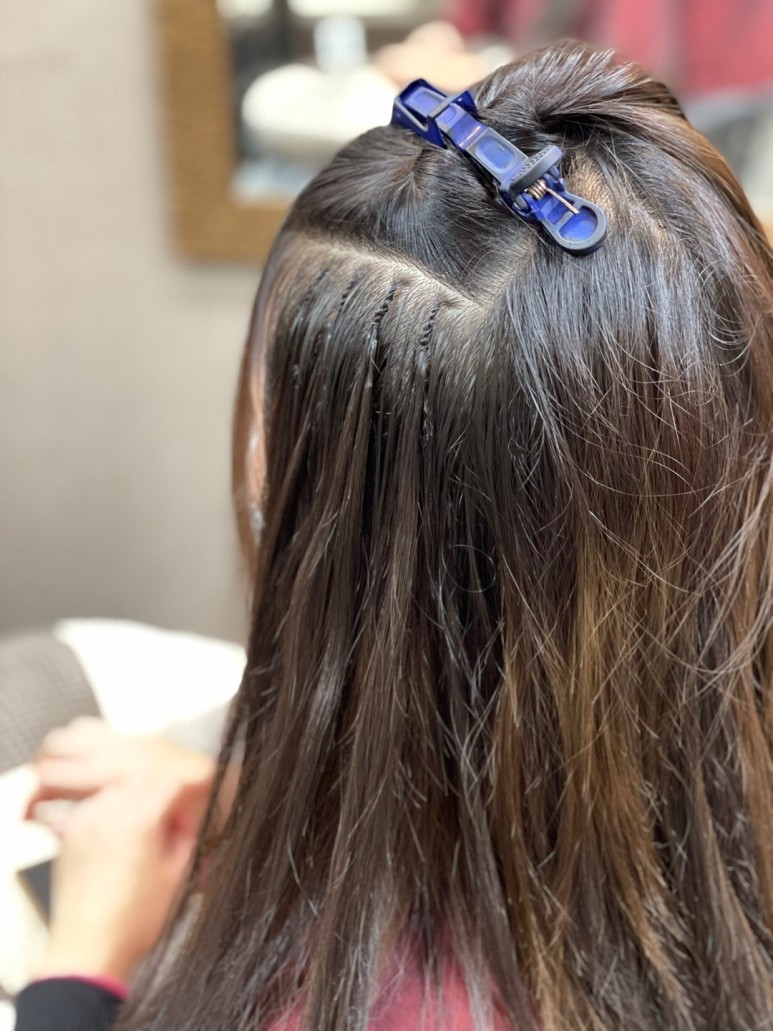 그래서 윗색깔과 맞게 아랫머리를 염색하려고 했더니 예전에도 그랬는데 아직도 상했던 머리가 결과물이 빠지고 원래대로 돌아와서 어떤 방법이 있을까 고민했어요. 그렇게 해서 찾은 게 붙임머리였어요.몇 년 전까지 붙임머리를 하면 탈모를 하는 쪽이 얇은 머리이기 때문에 가발을 쓰기 전에 붙이는 용도로 기억하고 있습니다.