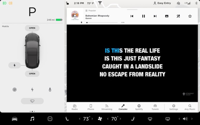 Notatelasapp🔊 가라오케 기능, 이번이 처음 아니야?테슬라가 노래방 기능을 추가한 것은 이번이 처음은 아닙니다. 2019년 소프트웨어 업데이트의 일환으로 가라오케(Car + Karaoke)를 출시하였습니다. 특별한 기능은 없었고 가사를 노래방처럼 크게 지원할 뿐이었죠. 그런데 이번에는 마이크에서 앱까지 제대로 노래방처럼 이용할 수 있게 했어요.