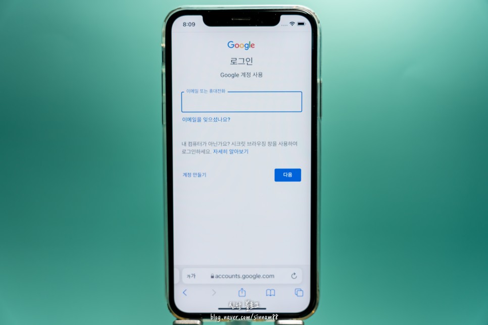 로그인이라는 창에 구글 계정 사용과 관련된 내용으로 이메일이나 휴대전화를 입력하여 로그인하라는 안내가 있는데,