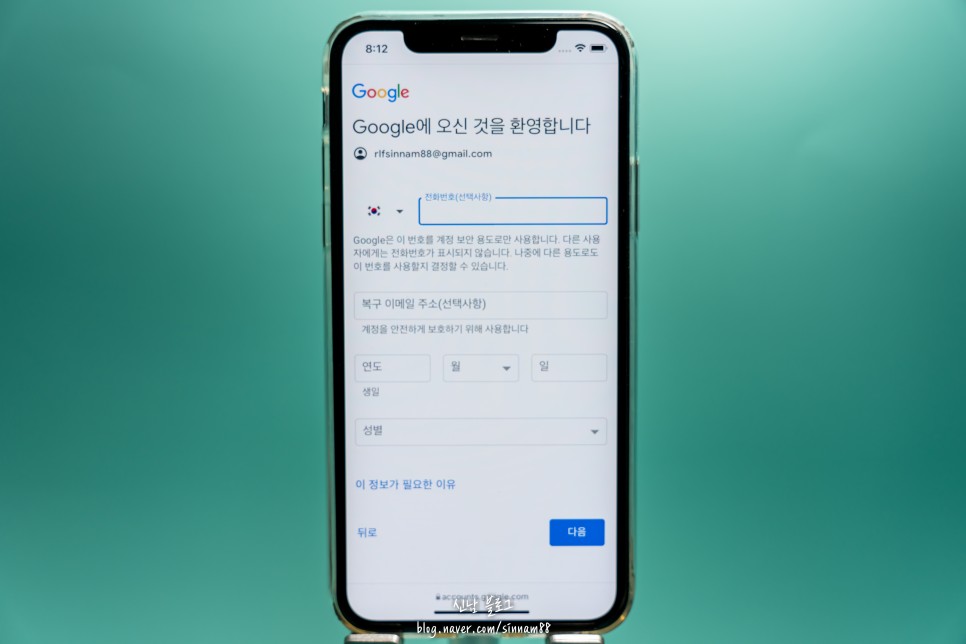 복구 메일은 굳이 작성할 필요 없이 연도와 날짜 생일을 적으신 후 다음을 누르십시오.