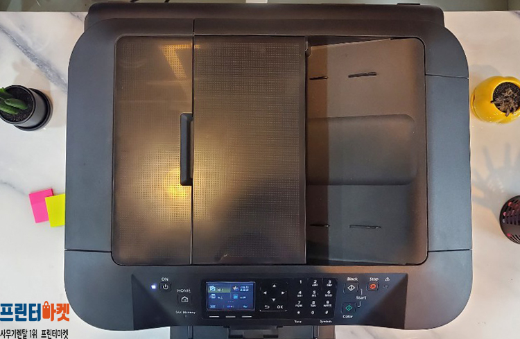 기기 상단 커버를 열면 ADF 자동 문서 급지대가 있습니다.한 번에 다량으로 스캔, 카피, 팩스 기능을 사용할 수 있습니다.자동 급지대 용량은 최대 35매입니다. 시흥 프린터 대여 잉크젯 컬러 가정용 프린트기 대여 캐논 2020 추천