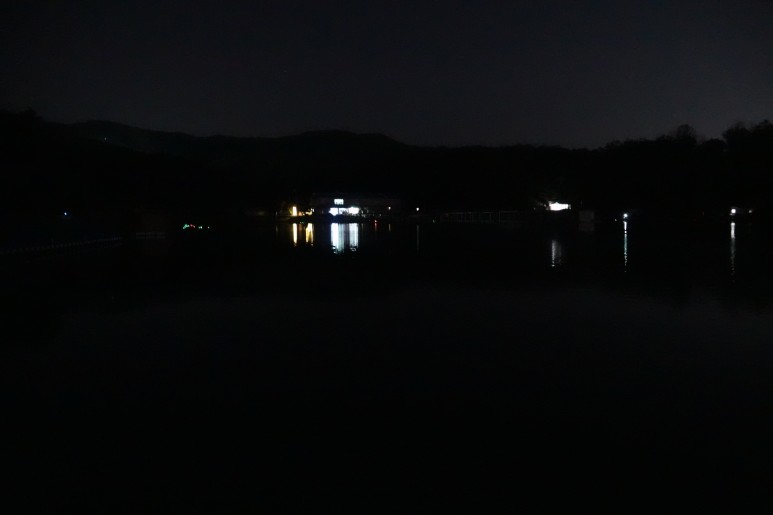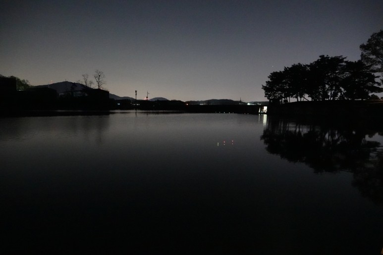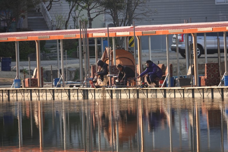 저녁 9시에 도착했어요. 생각보다 추웠어요. 뭔가 불길한 예감이 들었어요. ㅠㅠ 우리는 수심이 깊은 곳을 선택하고 자리에 앉았어요.