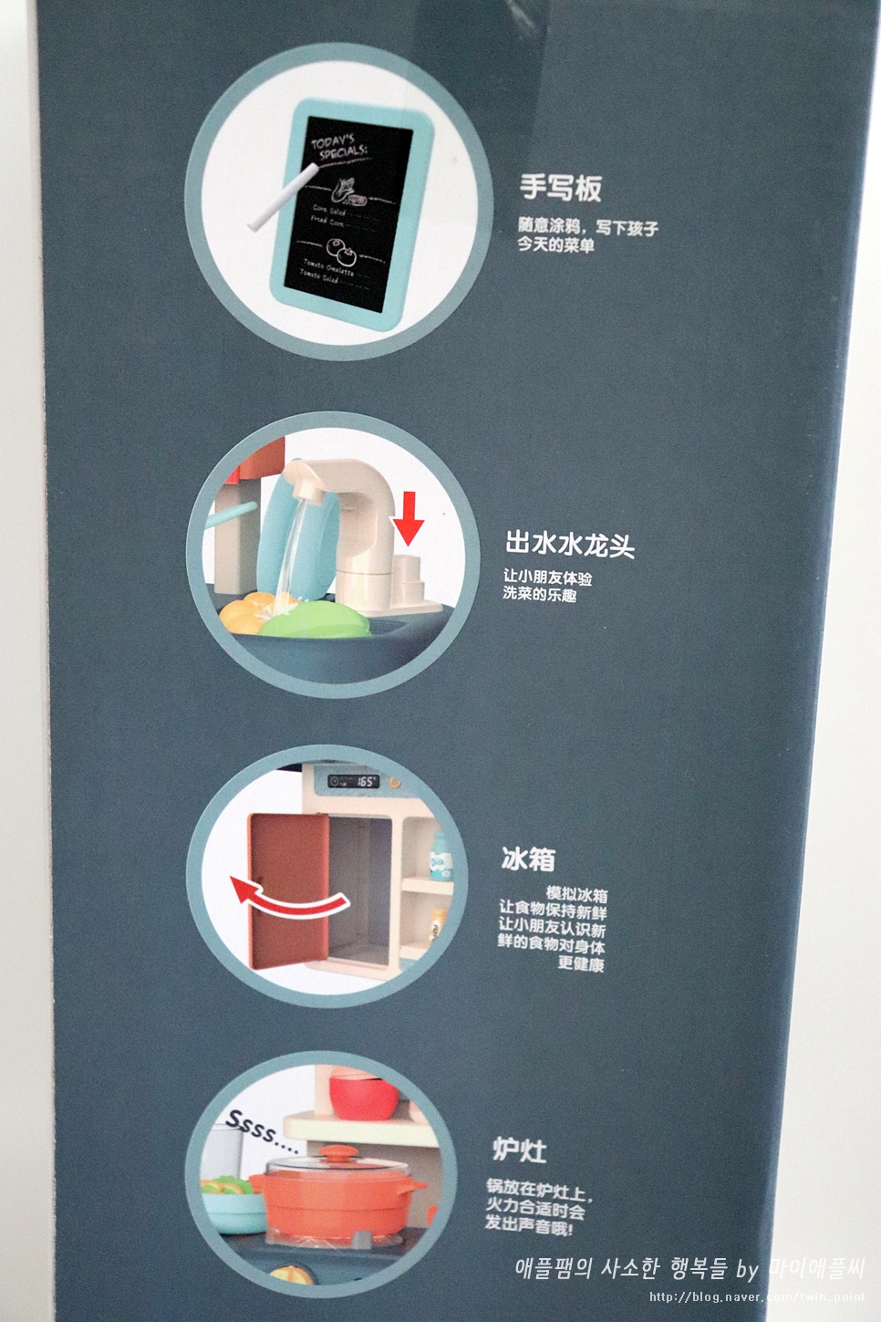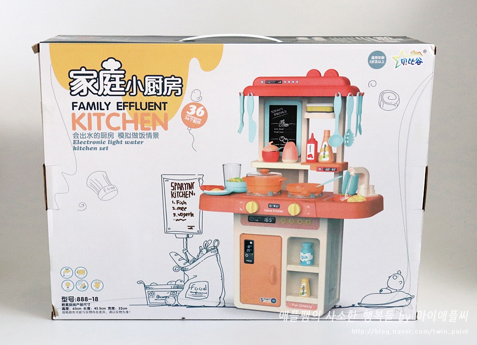 그야말로 try your likes 주방놀이 세트인데 가격이 1만원 초반이라니 대단해~~ 그리고 사이즈도 거실에 둘 수 있는 사이즈라서 끝방에 있을 때보다 더 많이 놀 것 같다.