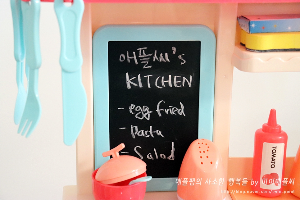 가장 큰 것은 조립 완료다.여기에 꾸미는 스티커를 적당한 위치에 붙인다 붙이면서 알게됐는데 밑에 문이 달린 것은 냉장고였다.www 그리고 부품을 각 위치에 세팅해 주면 되는데 가격을 따지고 보면 정말 퀄리티가 상당히 좋고 디자인 자체가 본 적이 없는 새로운 느낌이다. 메뉴를 적어 두는 저 칠판은 정말 참신해. 애플씨도 아주 좋아해.앞으로 글을 잘 쓰게 되면 하루에 몇 번씩 바꾸지?지금은 나에게 시키고 있다.(웃음)