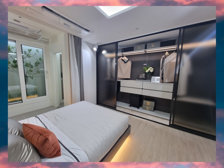 그 다음으로 높은 비율을 차지한 7,5㎡도 3개의 침실이었다. 드레스룸과 파우더룸을 확장하여 계절별로 의류를 관리하는 것이 쉬워졌습니다. 복도에 수납 창고가 있어요.숭의동 크루즈시티 파크뷰 75㎡ A형은 4베이로 채광효율과 맞바람성능이 뛰어납니다 B형은 양쪽을 개방하여 확장감을 줍니다. 양쪽의 전망을 얻어 파크뷰, 시티뷰 모두 감상합니다.