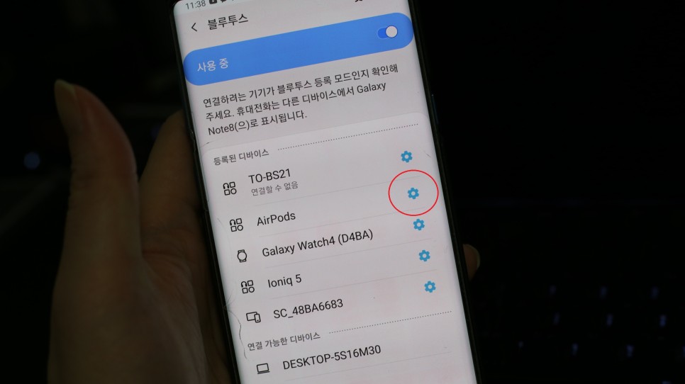 상단의 블루투스 아이콘으로 확인하실 수 있습니다.