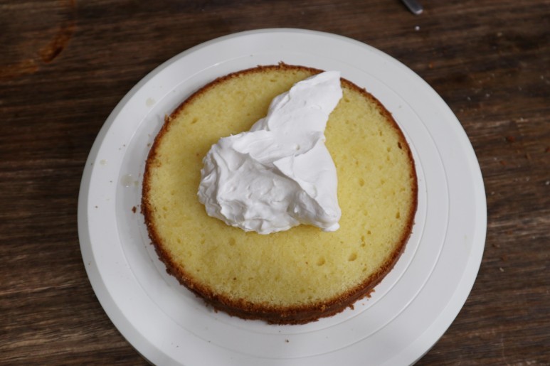 아이싱용으로 덜어놓은 생크림을 다 위에 올려주세요