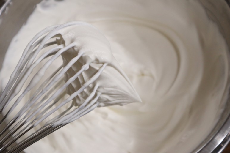 동물성 생크림은 순식간에 오버휘핑이 잘 되기 때문에 어느 정도 굳으면 손휘핑으로 휘핑합니다.