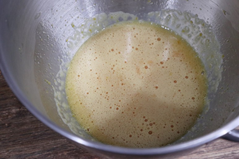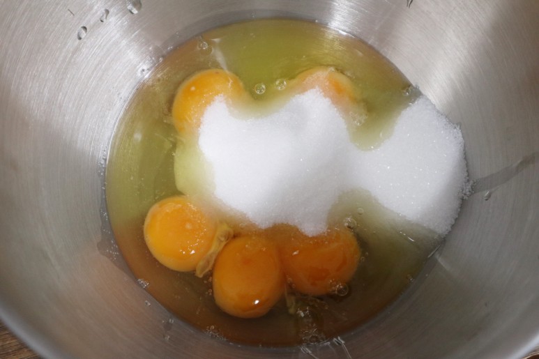 계란+노른자+설탕+꿀의 미끈미끈한 손을 볼에 넣고 잘 섞어주세요.