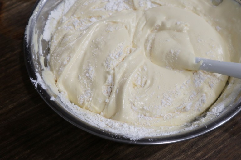 또 아까처럼 반죽을 섞어요 안 빠지게 잘 저어주세요